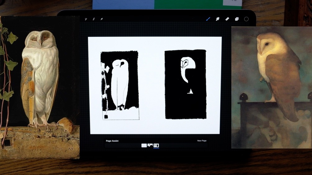 • Complete four master studies using the Notan technique (you can choose your own subject or follow along with mine — owls!)