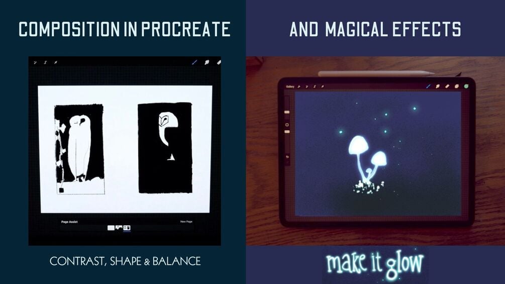 This is a bundle of two courses to strengthen your composition skills as well as a fun and beautiful effect in Procreate to make magical things glow!